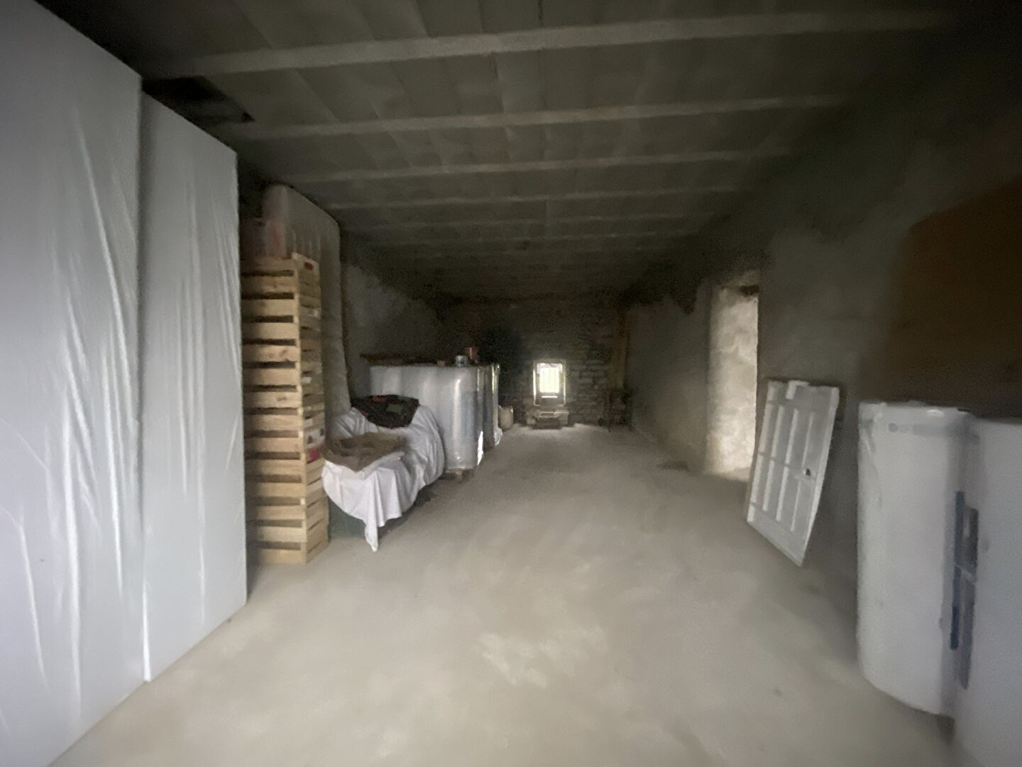 10 min Lons Sud, maison en pierre à rénover, environ 132 m² au sol, 3 travées de 44 m² chacune, chape béton faite sur tout le rez-de-chaussée, 2 dalles béton réalisées déjà existante sur 2 travées, viabilisation sur le côté de la cour, cave voûtée en pierre de 25 m².